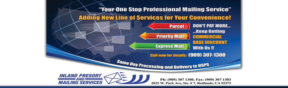 Welcome to Inland Presort & Mailing Services (IPMS). Inland Presort & Mailing Services (IPMS) has been serving the Inland Empire area since 1996. It provides bar-coding and presorting services to local government agencies and businesses for postage discount. It has been providing and is committed to provide presort & mailing services with integrity, security, and expeditious delivery. It meets “Same Day Processing & Delivery to USPS” standard requirements by its customers.